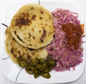 And then on Sunday we hit the Red Hook ball field vendors. Nate slept through lunch, which was good, because I would not have wanted to share my pork and cheese pupusas and shockingly pink curtido. I don’t know what makes it pink, but mmmmm boy, good stuff.